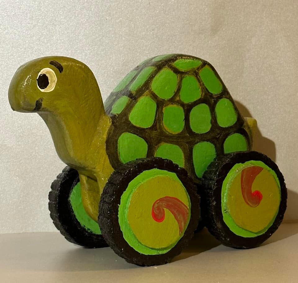 Schildkröte aus Sperrholz, robuste Handarbeit, bemalt und lackiert, zum herumziehen für Kinder (ab ca. 1 Jahr), als Begleiter, auch für draussen geeignet, Länge 24cm, Höhe 17cm, Breite 12,5cm